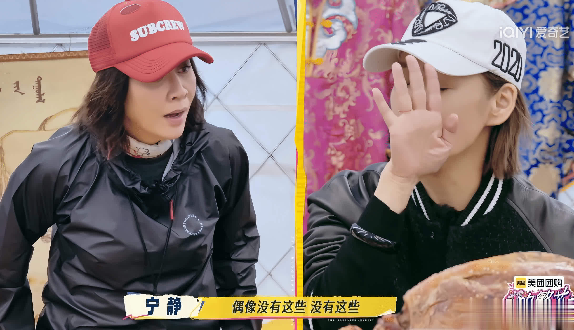 宁静也是怪可爱的,用手遮住脸给刘嘉玲使眼色,强调偶像没有这些。